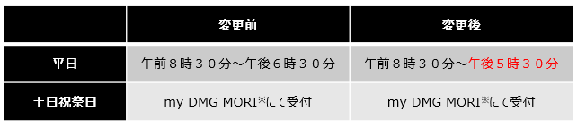 なお、平日の時間外でのお問い合わせにつきましては、my DMG MORI ※ にて受付致します。